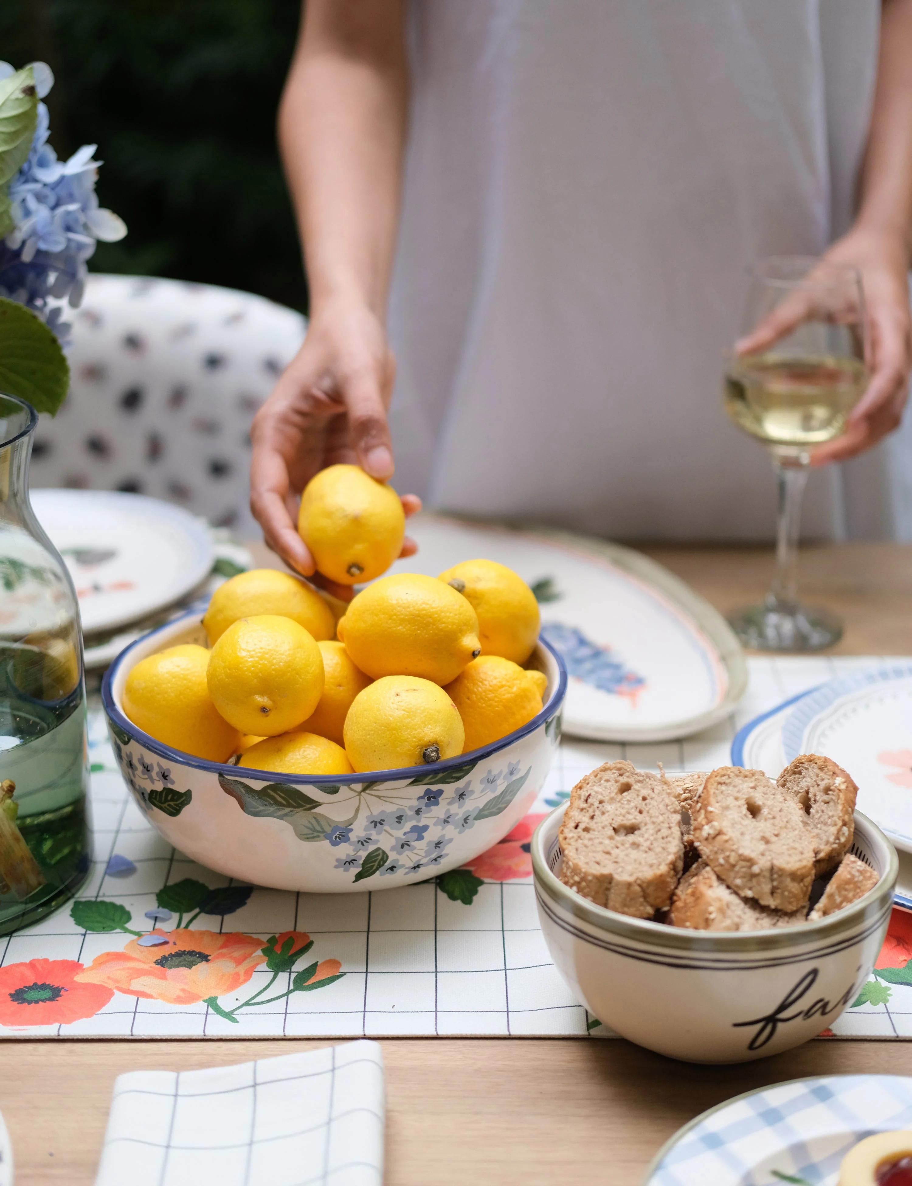 A big bowlful of the fresh stuff. Featuring florals all around, with irregular edges to top off the natural look and feel.